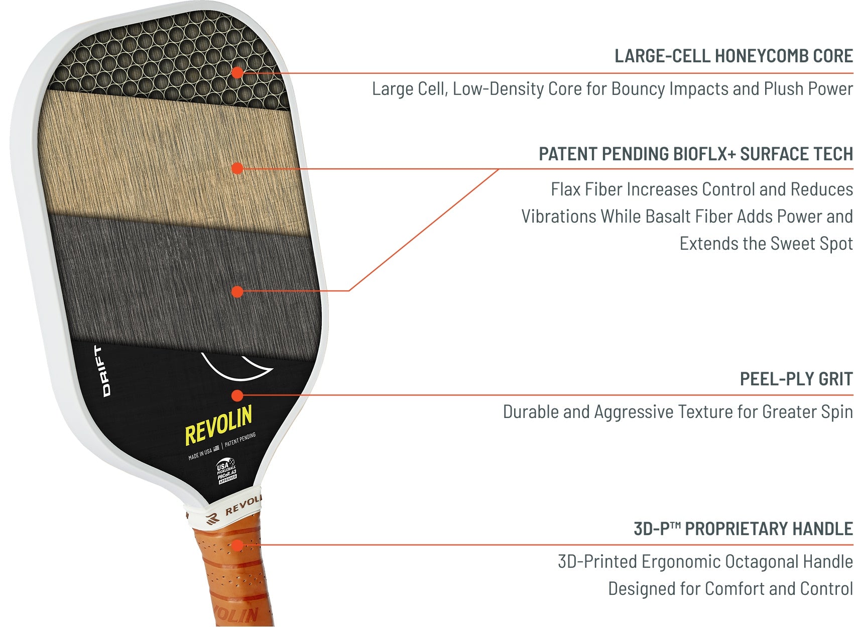 Michigan's glacial drift is the powerful geological force that shaped our home state over thousands of years. Just as glacial drift adapted to carve lakes, hills, and valleys across Michigan's diverse landscape, the Drift paddle adapts to every situation on the court. Just as glacial forces deposited everything from fine sand to massive boulders across Michigan, Drift combines the finest natural materials—volcanic basalt fibers for power, flax fibers for control—creating the perfect all-court blend.