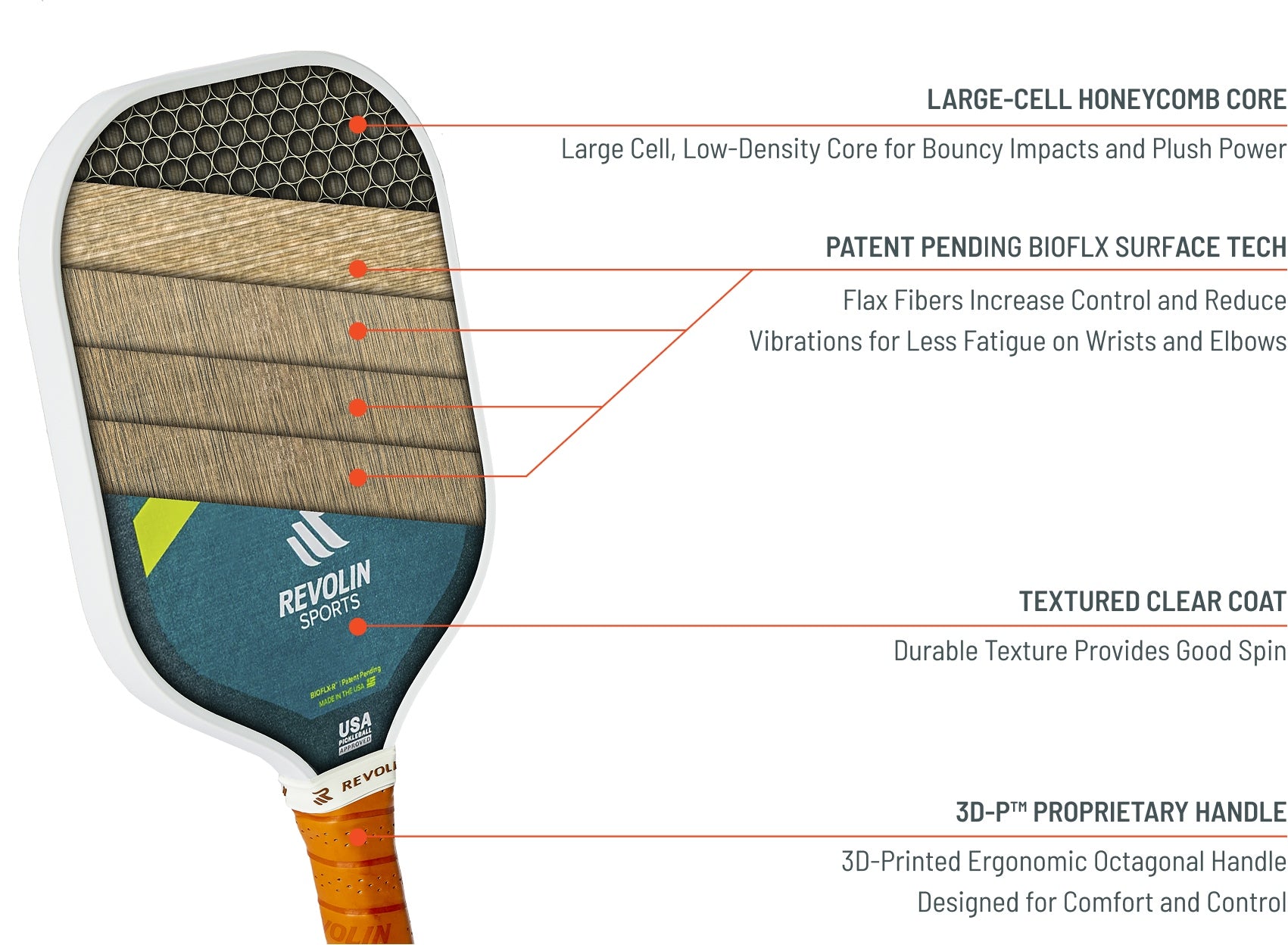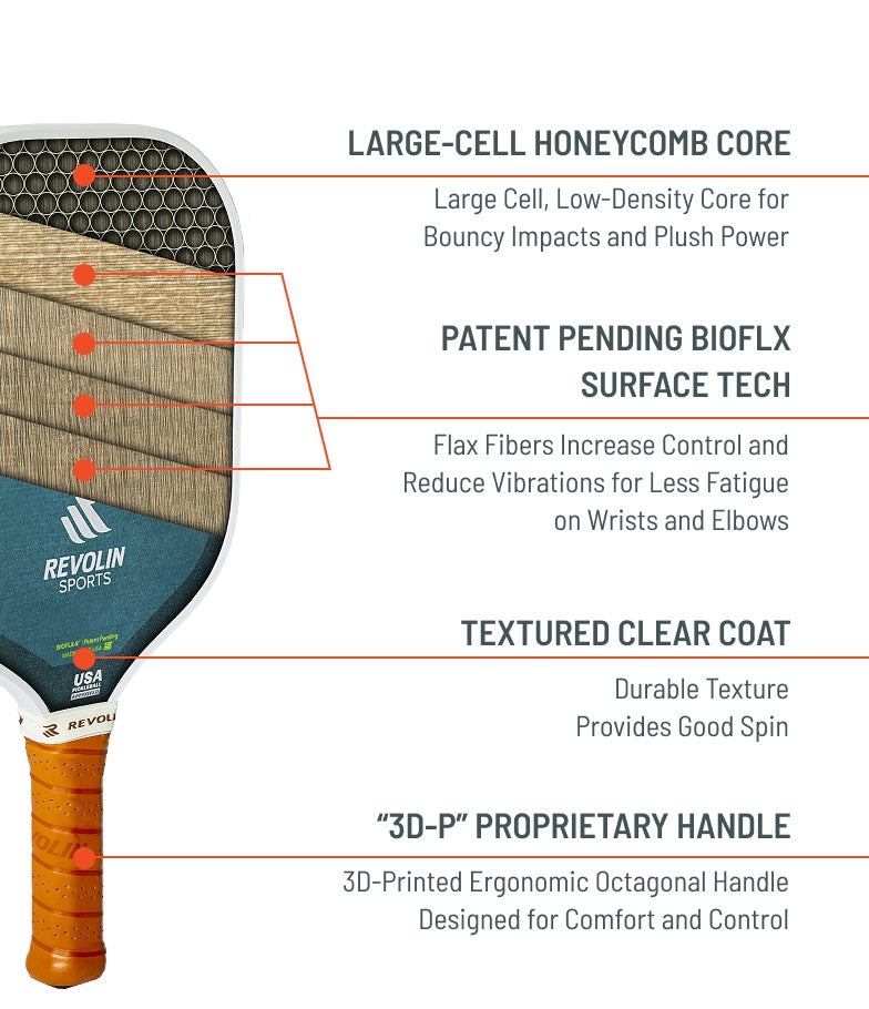 Vibrations from pickleball paddles can cause pain and worsen injuries. BioFLX reduces vibrations 200% better than fiberglass and 20% better than carbon fiber due to the cellulose structure of flax. By dispersing the shock from the ball, BioFLX reduces potentially harmful vibrations.